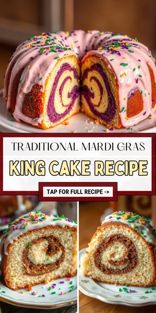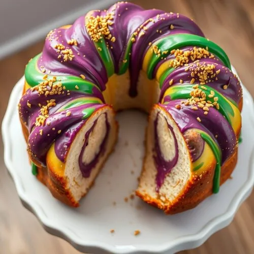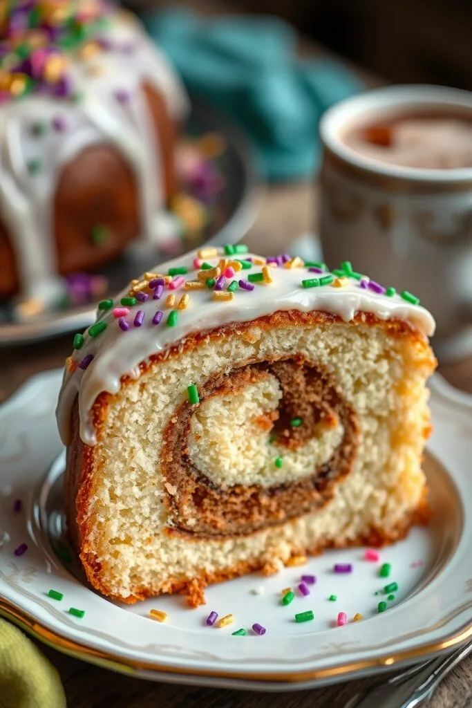 I’ll never forget the first time I tasted a traditional king cake! It was during my trip to New Orleans for Mardi Gras when I was just a little girl. The bakery was buzzing with people, and the sweet smell of cinnamon and sugar filled the air. My eyes widened as I saw the beautiful, colorful ring of pastry topped with purple, green, and gold sprinkles. When I bit into that soft, sweet bread with its cinnamon swirl filling, I was hooked forever!
